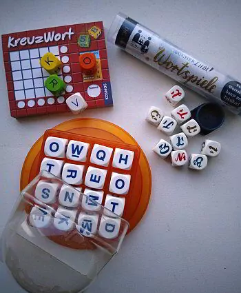 Mit unserem Schreib-Grundmaterial, den Buchstaben, gibt es auch eine ganze Reihe von Spielen. Man kann sie klassisch durchspielen, zum Fantasie-Wörter-Erfinden nutzen oder um ähnliche Wörter zu entdecken. Klassisch sind Buchstabenwürfel oder Buchstabenplättchen. Hier kann man aus dem Vollen schöpfen und aus dem gezogenen Material Wörter zusammensetzen. So stellt man schnell fest, worum die eigenen Gedanken gerade kreisen. Und schon haben wir das Thema für den nächsten Text. Sie finden sich zum Beispiel in: