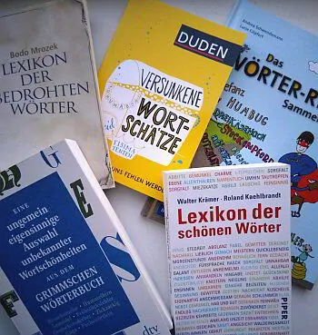 Es gibt eine Reihe von Büchern, die besondere Wörter sammeln, zum Beispiel aus dem Duden-Verlag, aber auch in den Büchereien wird man fündig. In solchen Büchern zu blättern, sich inspirieren zu lassen und mit den Wörtern darin zu arbeiten, regt unsere Fantasie an. Zum Beispiel gibt es Sammlungen von Wörtern, die aus unserer Sprache verschwinden; manche aus guten Gründen, weil sie Gruppen abgewertet haben, andere, weil es die Gegenstände, die sie bezeichnet haben, nicht mehr gibt, wie die Wählscheibe. Dann gibt es Wörter, die in ihrer Sprache einzigartig sind – und nicht zu übersetzen scheinen. Auf Isländisch bezeichnet man Wetter, bei dem man es sich lieber drinnen gemütlich macht, als rauszugehen, als gluggavedur, also Fensterwetter. Vielleicht findest du ja in anderen Sprachen spezielle Ausdrücke auf deinem Gebiet, die du neu im Deutschen etablieren kannst? Kreativ darüber nachzudenken, lohnt sich auf jeden Fall.